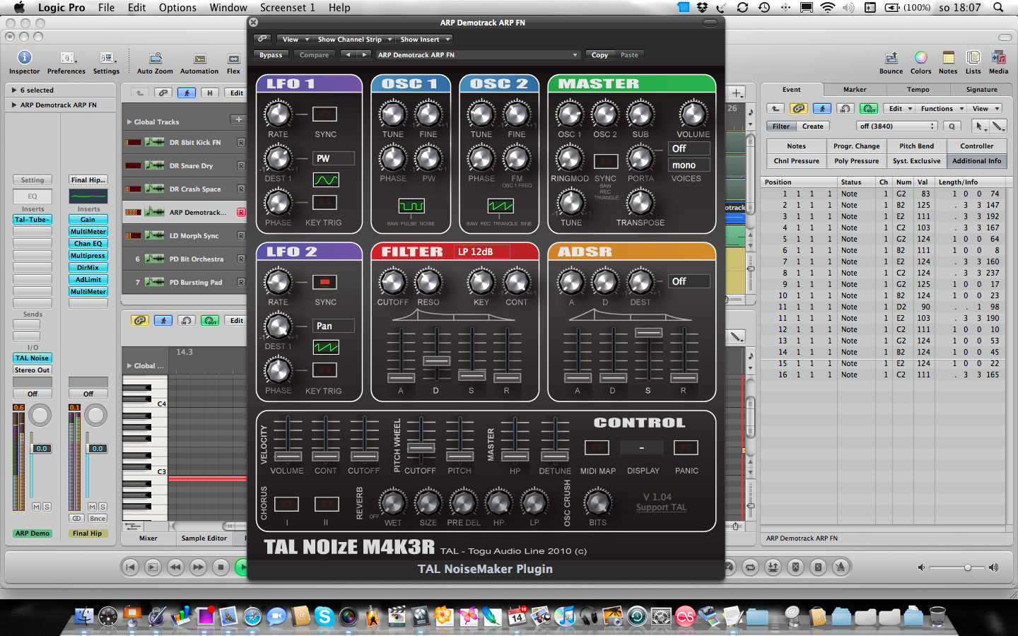 This demo is created entirely on TAL NoiseMaker hosted by Logic 9 with couple of Logic plug-ins and TAL Tube on the bass synth line.